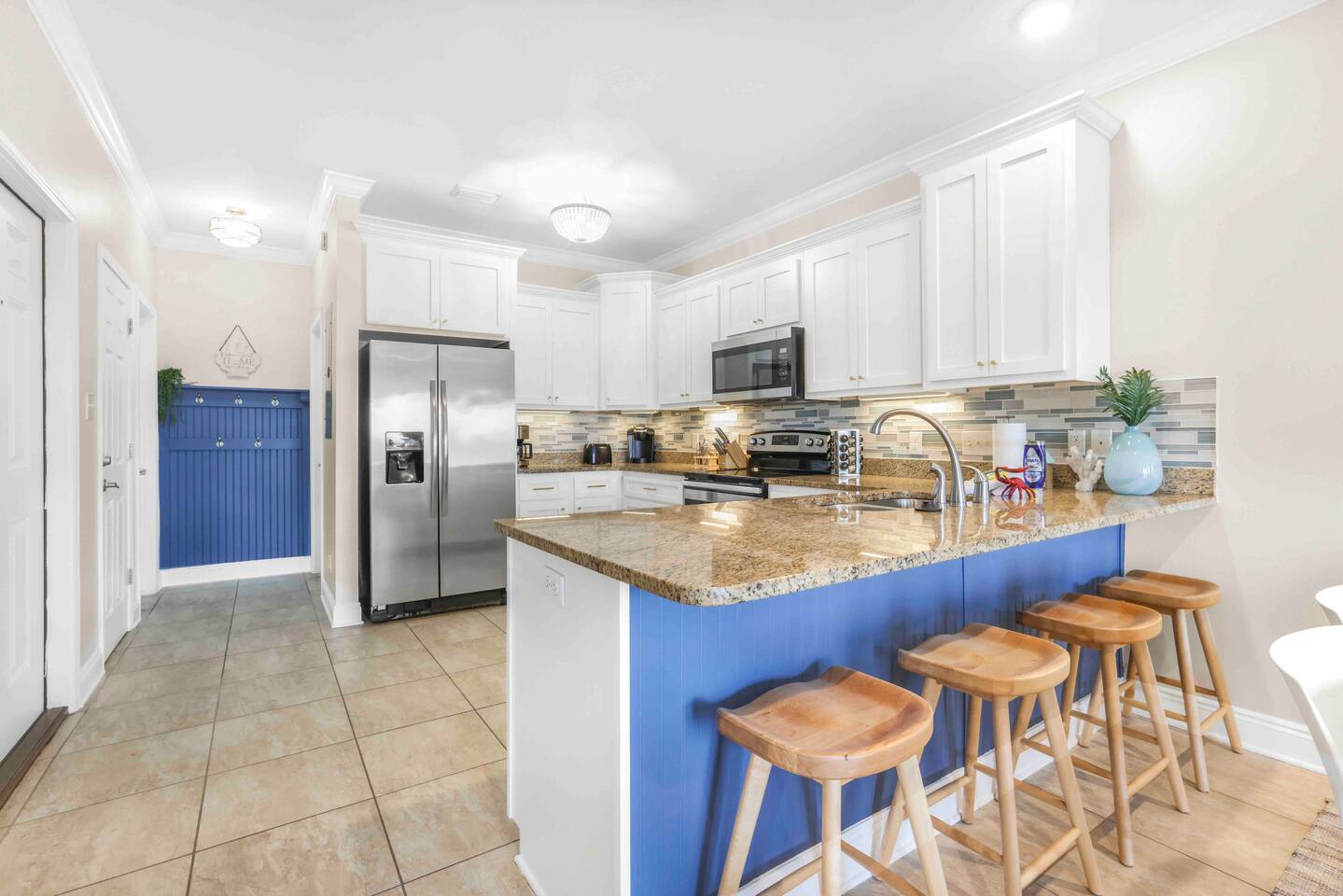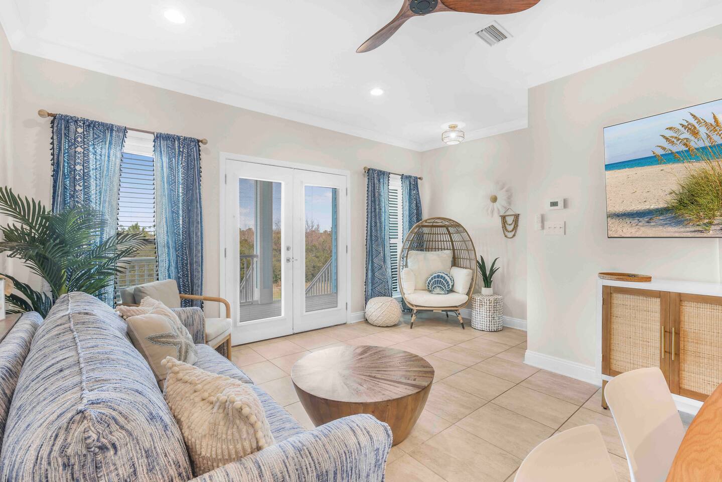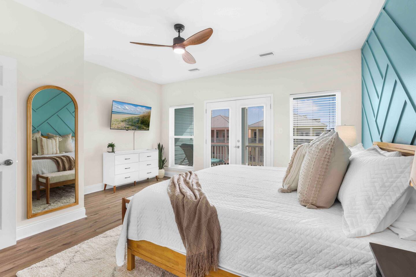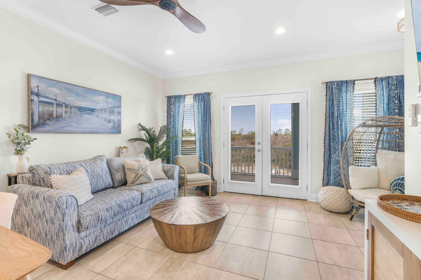 Take in the coastal atmosphere at Blue Tide! This spacious 3 bedroom, 3 bathroom house has everything you could possibly want and more. Relax with us this vacation with top-quality furnishings, decor, and electronics, you'll have all the comforts of home. Wi-Fi access is available throughout the house. The kitchen is fully stocked for all of your cooking needs. The open floor plan to dining room and living room assist in making sure you never miss a moment of time with friends and family. You can enjoy your morning coffee on back deck overlooking the pool or enjoy afternoon lunch on the front porch with your loved ones. The 4 decks offer a comfortable living/dining area to provide a fantastic option for relaxation and food. Enjoy an experience in a magical, relaxing atmosphere during your one of a kind stay with Blue Tide! The open living room invites you to sit back and appreciate time with the most important ones, read a book, play a board game, watch television or just be. The bedroom on the first floor is equipped with twin over full bunk bed and a full hall bathroom. Upstairs, the master bedroom offers a king-sized bed, an ensuite bathroom a calming view of the pool and partial ocean view. Soak in the tub or relax in a hot shower after a long day at the beach. The guest bedroom furnishes a king- sized bed and full over full bunk beds and is met with an en-suite bathroom overlooking the marsh. You'll appreciate the tranquility of Blue Tide - a short walk to the beach. Close to several hotspots around town like The Hangout, Sunliner Diner, Picnic Beach, The Gulf, The Factory trampoline park, Bier Shack Tap Room, Wildflowers Boutique and Zeke's Landing fishing charters. We look forward to you staying in Blue Tide, your piece of white sand paradise! Bedroom 1: King Bedroom 2: King + Full over Full bunks Bedroom 3: Twin over full bunks Queen Sleeper Sofa In the event of a hurricane: Only under mandatory evacuations are payments fully refundable. Trip insurance recommended during hurricane season. Must be 21 to book and must be present.
