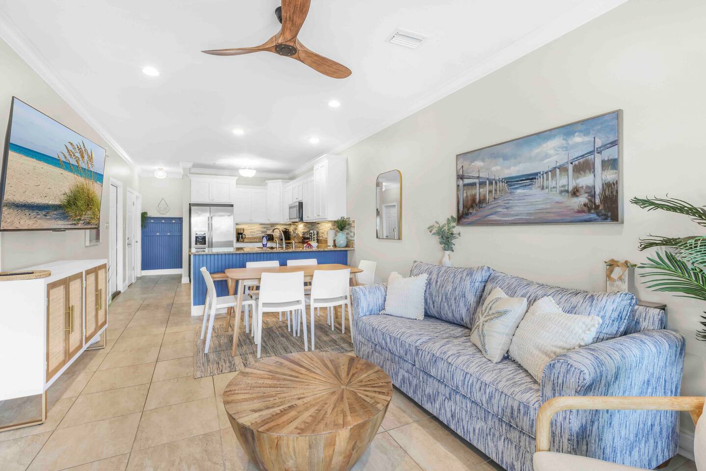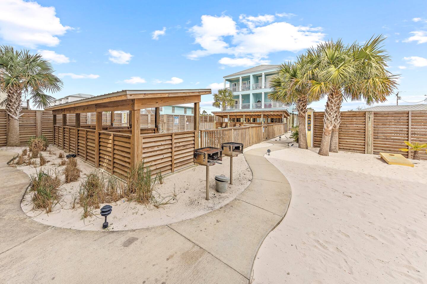 Come escape to the white sandy beaches and emerald waters at Blue Tide in Gulf Shores, AL! This beautiful duplex is expertly decorated and comfortable for groups of 12 or less. A quick 4 minute walk to the beach and walking distance to local hot spot, The Hangout, plus dozens of shops and restaurants. It is the perfect location to relax, unwind by the fire pit, or play some volleyball outside by the community pool! Pool is shared with other duplexes at the complex.