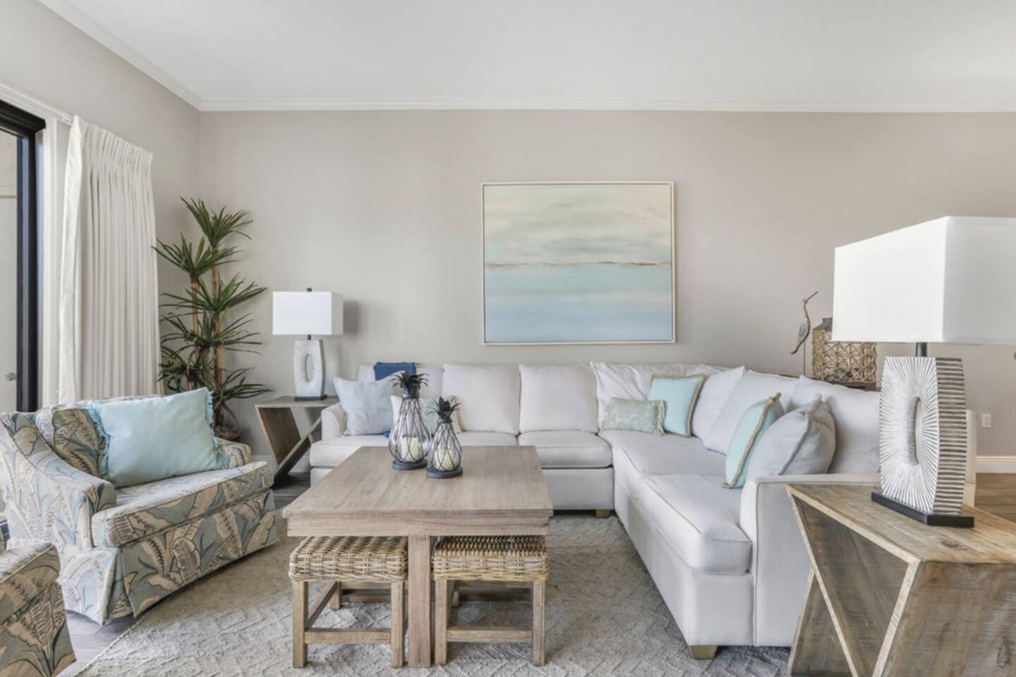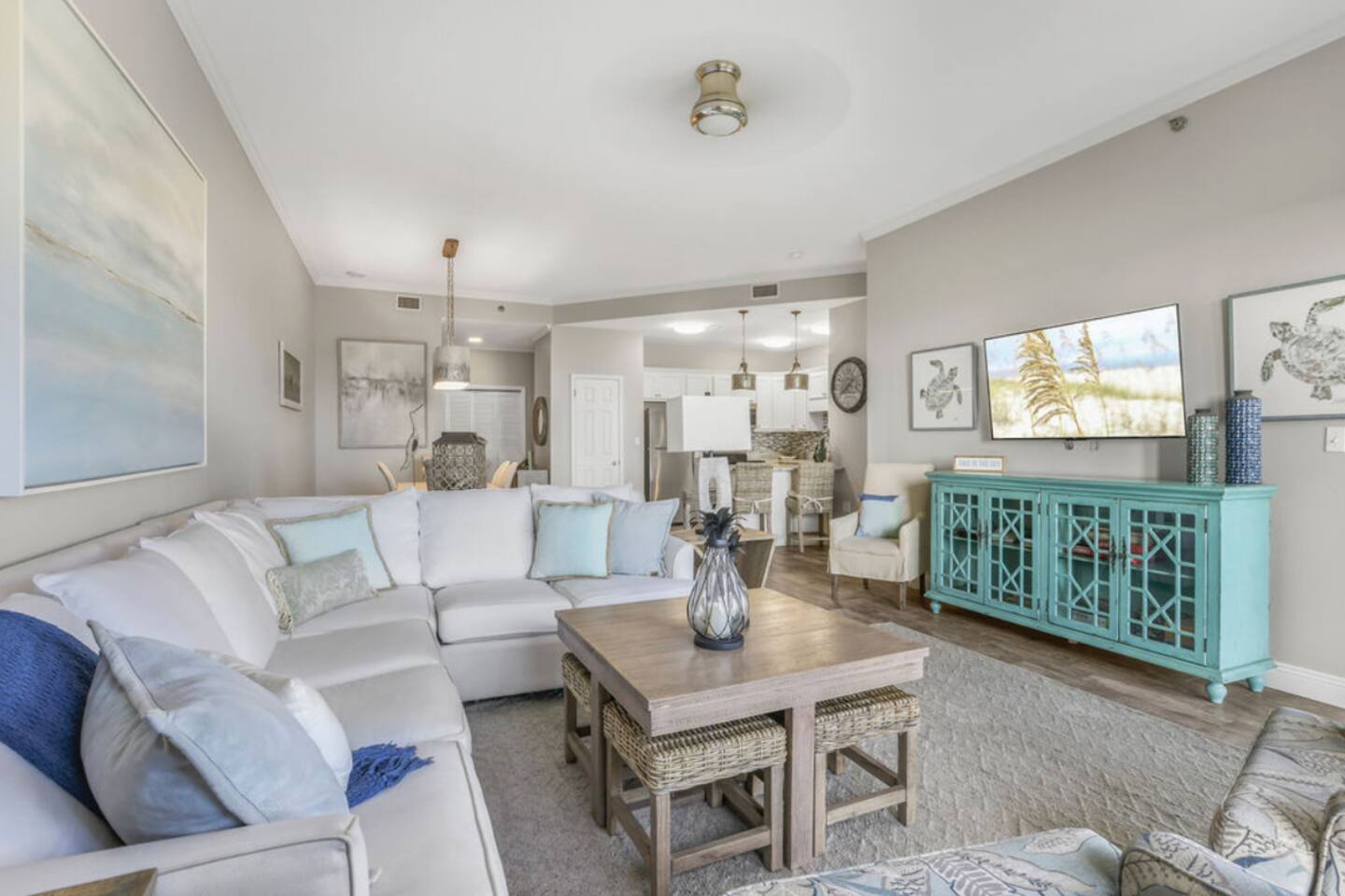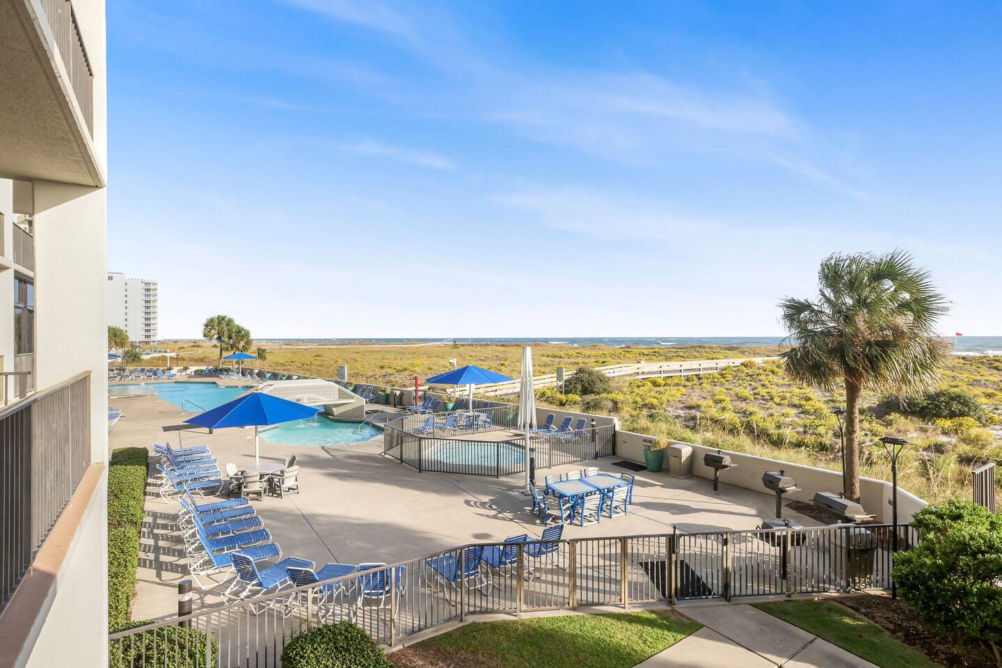Located in the heart of Orange Beach at Phoenix VI, you will enjoy the comforts of home while having luxury amenities at your fingertips at "My Coastal Haven". You can have it all with plush beds, clean and well maintenance condo, fully stocked kitchen, stunning beach views, 3 pools, a gym, sauna, racquetball and tennis/pickleball courts! No fighting elevator lines or big staircases, this condo is located on the first floor with easy access for your entire group! SLEEPING ARRANGEMENTS: Bedroom 1: King Bed + Ensuite Bathroom + Walk Out Balcony Bedroom 2: King Bed Bedroom 3: Queen Bed + Queen Bed Living Room: Pull Out Sofa Additional full bathroom located in the hallway between bedrooms 2 and 3. KITCHEN: Amateur cooks and culinary experts will both enjoy the fully stocked kitchen including blender, microwave, toaster, crock pot, griddle and more! Coffee lovers will enjoy your first cup on us! Your choice of Keurig or drip coffee maker. DINING: - 6 seats at the dining table - 3 seats at the kitchen bar LIVING ROOM: There's room for everyone on movie nights at the beach; Three accent chairs, oversized sectional and 4 small stools for littles around the coffee table. The large sectional folds out to be a comfortable queen sleeper sofa. 55 inch Smart TV with streaming apps - bring your passwords. BEACH SUPPLIES: Save space in your car if you'd like! In the condo you'll find: 4 Chairs 1 Umbrella Variety Beach Toys CONDO AMENITIES: Outdoor Pool Outdoor Kiddie Pool Indoor Heated Pool Sauna Indoor Hot Tubs Fitness Center Racquetball Tennis/Pickleball Courts EXPECTATIONS: Upon arrival you will have clean sheets and covers on all beds. One bath towel and one hand towel per person provided. Two hand towels per bathroom provided as well as one kitchen towel. A starter supply of incidentals including: - Coffee/K Cups - 2 Dishwasher Tablets - 2 Laundry Pods - 3oz Dish Soap - Sponge - 1 Trash Bag per can - 1 Roll Paper Towel - 1 Roll Toilet Paper per bathroom PARKING: Up to 2 cars with paid parking on site. $65/vehicle per stay beginning March 1, 2026