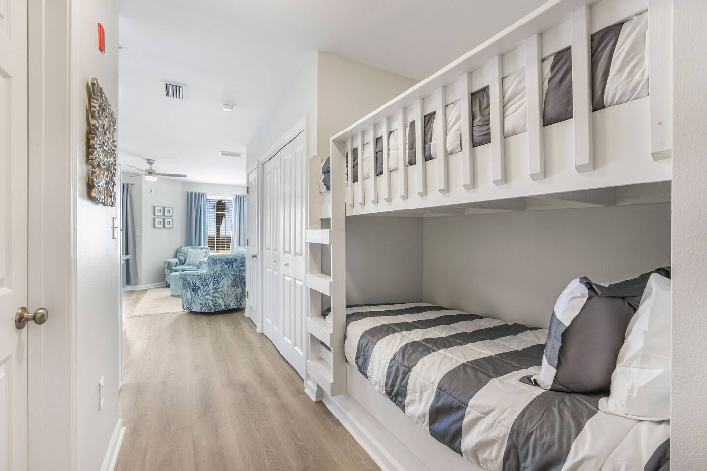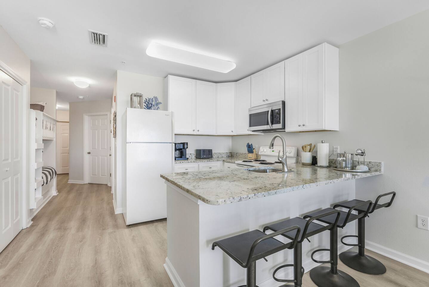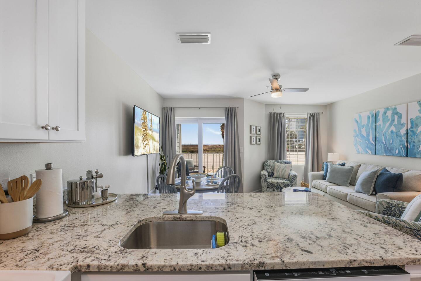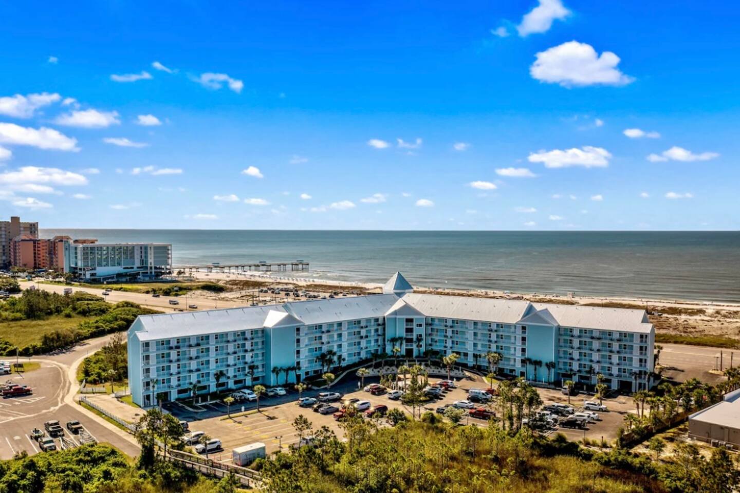 Located in the heart of Orange Beach at Grand Caribbean, you will enjoy the comforts of home while having amazing amenities at your fingertips. You can have it all with plush beds, clean and well maintenance condo, fully stocked kitchen, stunning beach views, outdoor pool, a gym, and public beach access right across the street (cross at light)! No fighting elevator lines or big staircases, this condo is located on the first floor with easy access for your entire group! SLEEPING ARRANGEMENTS: Bedroom 1: Queen Bed Hallway: Twin/Twin Bunk Beds Living Room: Pull Out Sofa Full bathroom located in the hallway. KITCHEN: Amateur cooks and culinary experts will both enjoy the fully stocked kitchen including blender, microwave, toaster, crock pot, griddle and more! Coffee lovers will enjoy your first cup on us! Your choice of Keurig or drip coffee maker. DINING: - 4 seats at the dining table - 4 seats at the kitchen bar LIVING ROOM: There's room for everyone on rainy movie nights at the beach; Two accent chairs, full size sofa around the coffee table. The comfortable sofa folds out to be a comfortable queen sleeper sofa. Smart TV with streaming apps - bring your passwords. BEACH SUPPLIES: Save space in your car if you'd like! In the condo you'll find: 2 Chairs 1 Umbrella 1 Wagon Variety Beach Toys CONDO AMENITIES: Outdoor Pool Fitness Center Charcoal Grill Public boat ramp right next door. EXPECTATIONS: Upon arrival you will have clean sheets and covers on all beds. One bath towel and one hand towel per person provided. Two hand towels per bathroom provided as well as one kitchen towel. A starter supply of incidentals including: - 2 Dishwasher Tablets - 2 Laundry Pods - 3oz Dish Soap - Sponge - 1 Trash Bag per can - 1 Roll Paper Towel - 1 Roll Toilet Paper per bathroom PARKING: 1 car per reservation with $50 paid parking on site.